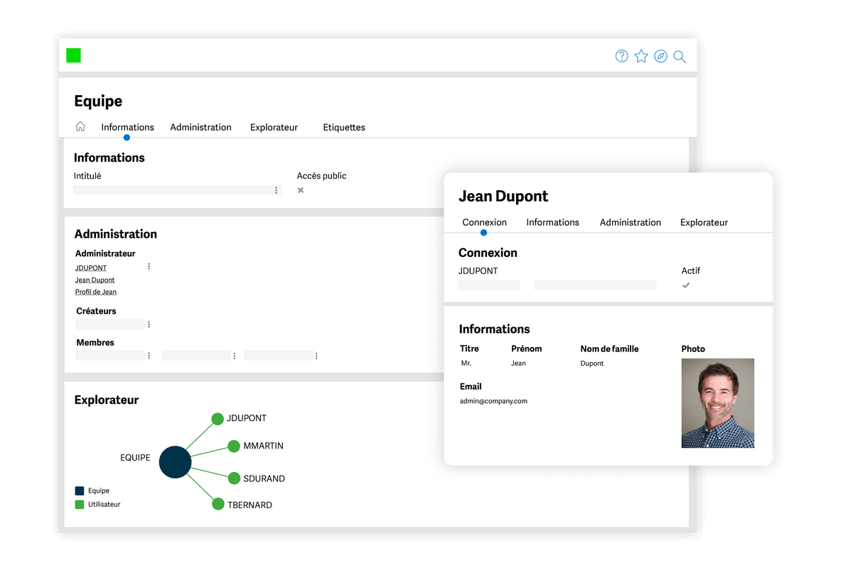Partage par utilisateur, poste et équipe projet incluant la gestion des étiquettes