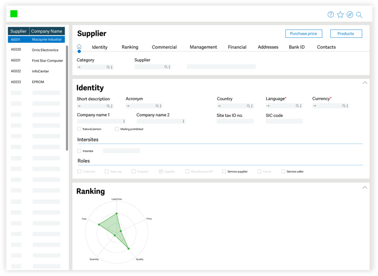 Sage X3 vous aide à gérer le processus d'achat en toute fluidité de bout en bout, depuis la gestion des appels d'offres, la saisie et le suivi des réponses jusqu'à l'intégration dans le barème de prix.